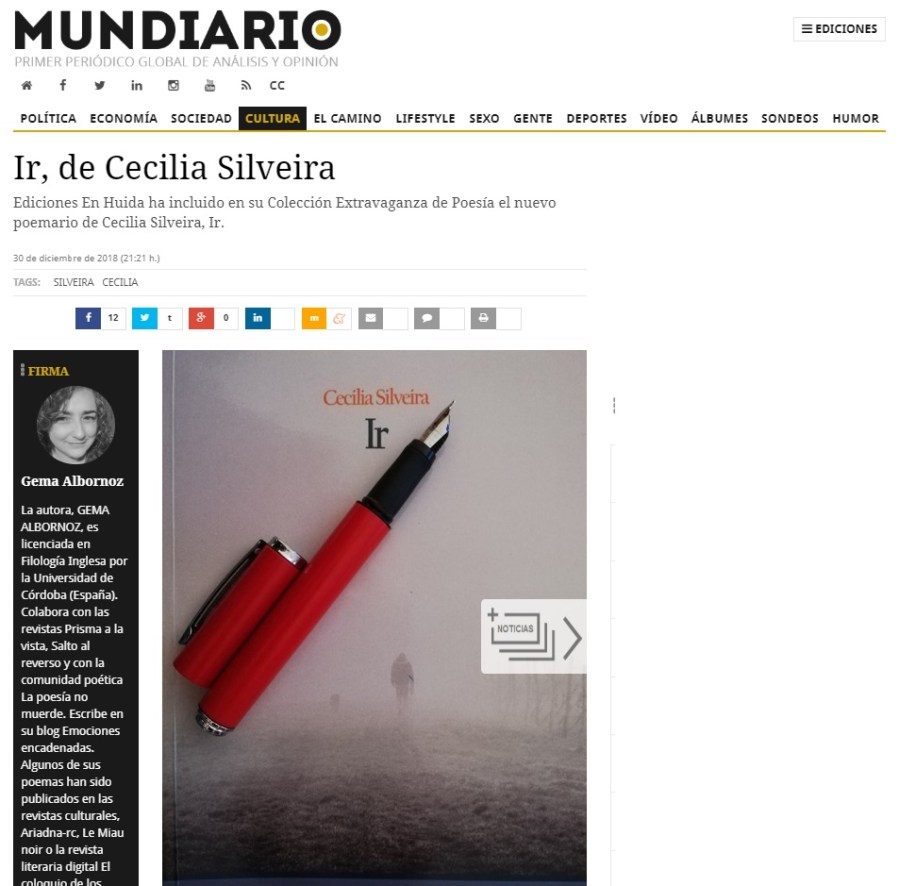 En esta ocasión os traigo una nueva reseña en Mundiario, Ir de Cecilia Silveira.